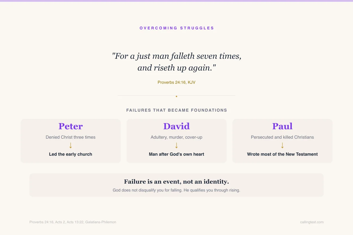 The consequences were severe. But David repented, and God continued to use him. His failure became the context for some of Scripture's most honest prayers of repentance (Psalm 51).