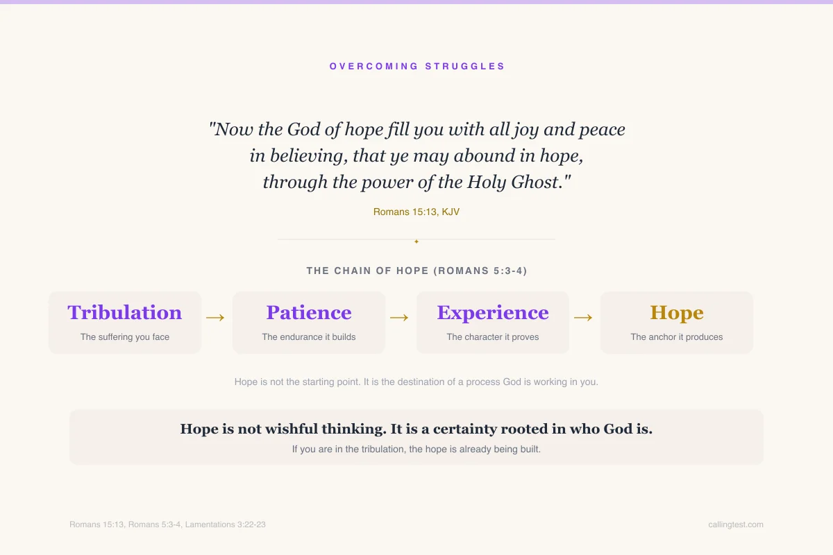 Romans 15:13, Romans 5:3-4, Lamentations 3:22-23