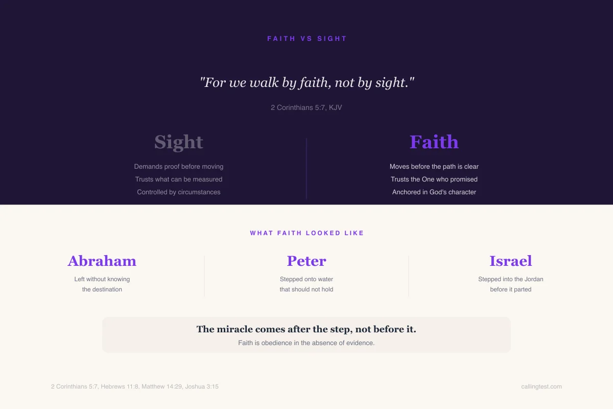 Because sight is comfortable. Sight gives you evidence, certainty, control. Faith asks you to move without those things — to trust what you cannot see, to step where you cannot look, to believe when there is no proof.