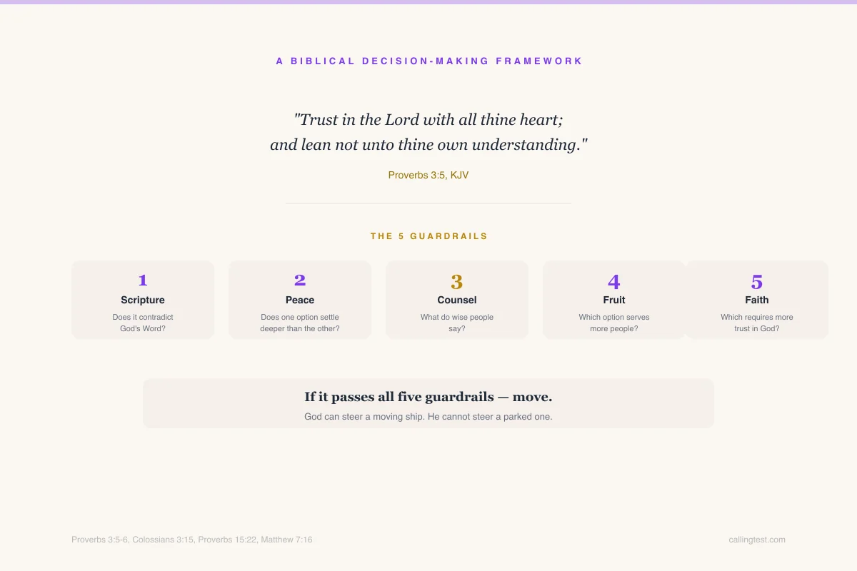Bring the decision to God. Not just once — repeatedly. Ask for wisdom. Ask for clarity. Ask for peace about the right direction.