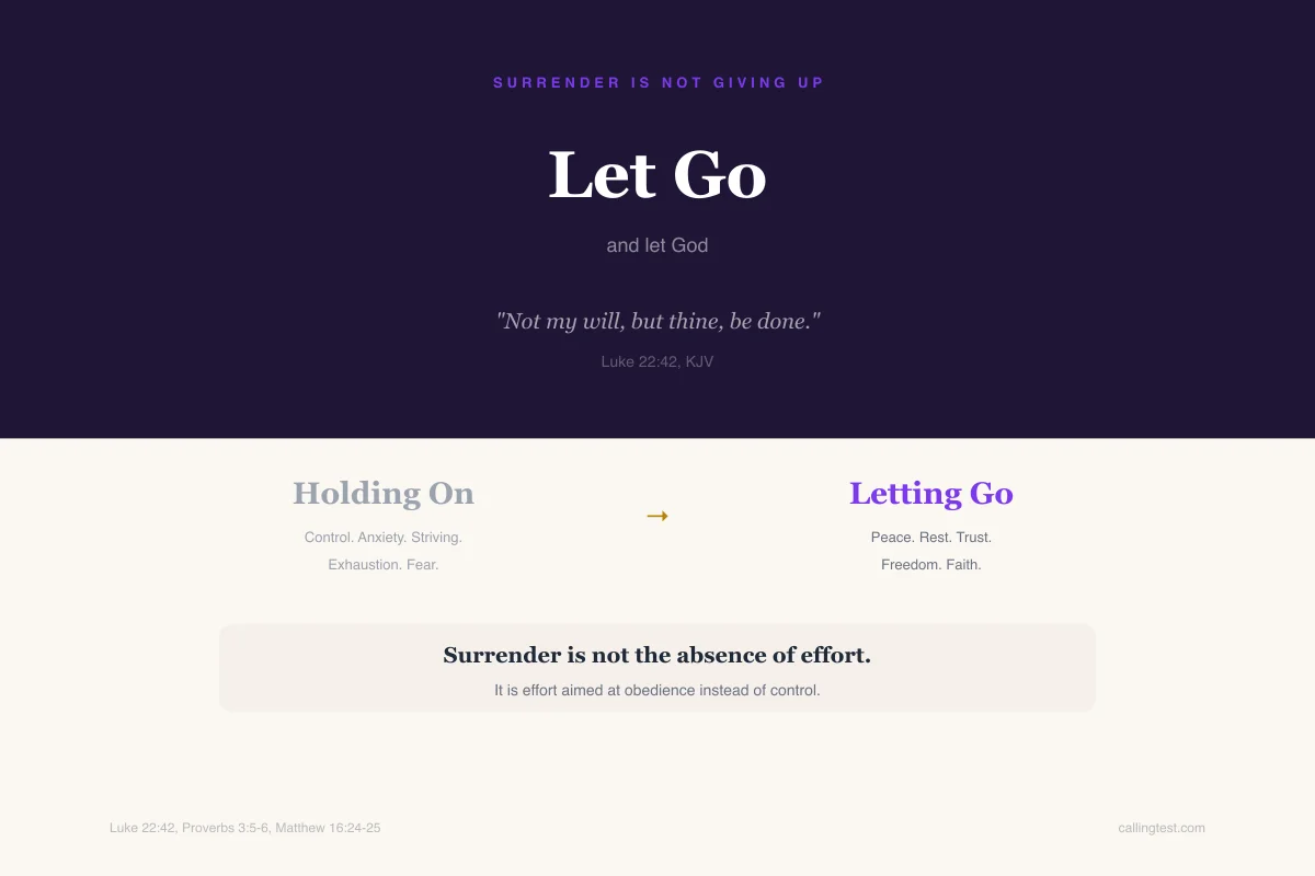 Purpose. When you let go of your plans, God's plans can emerge. Surrender opens the door to calling.
