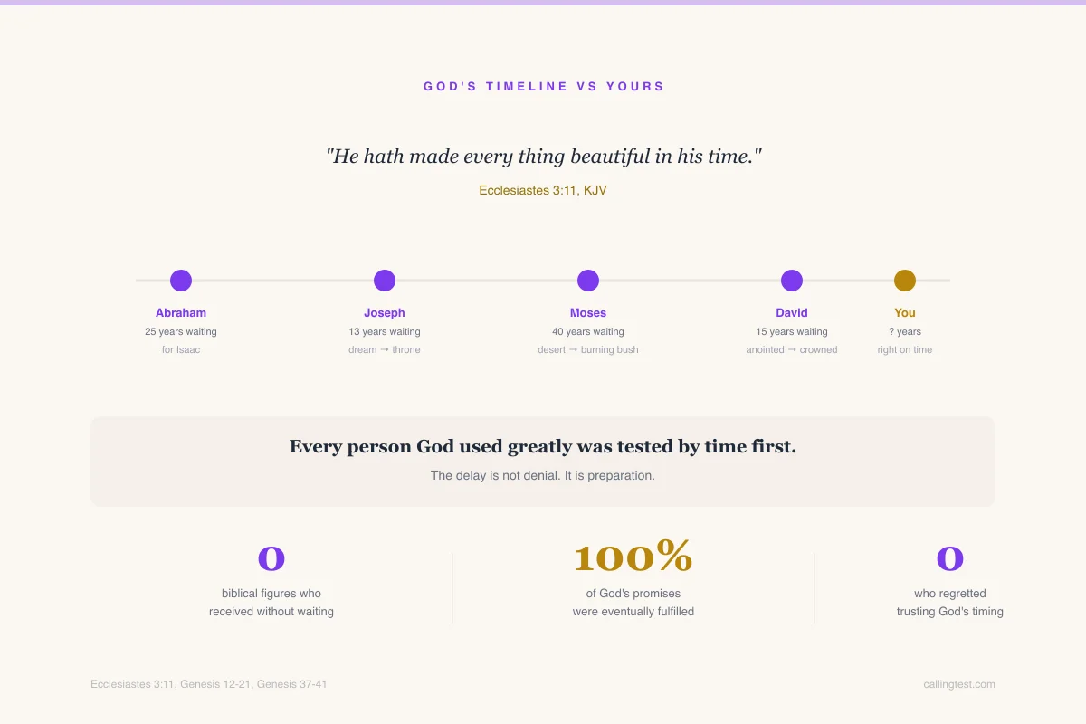 And His timing takes into account things you cannot see — preparation, protection, positioning, and a thousand other factors that only make sense from heaven's perspective.