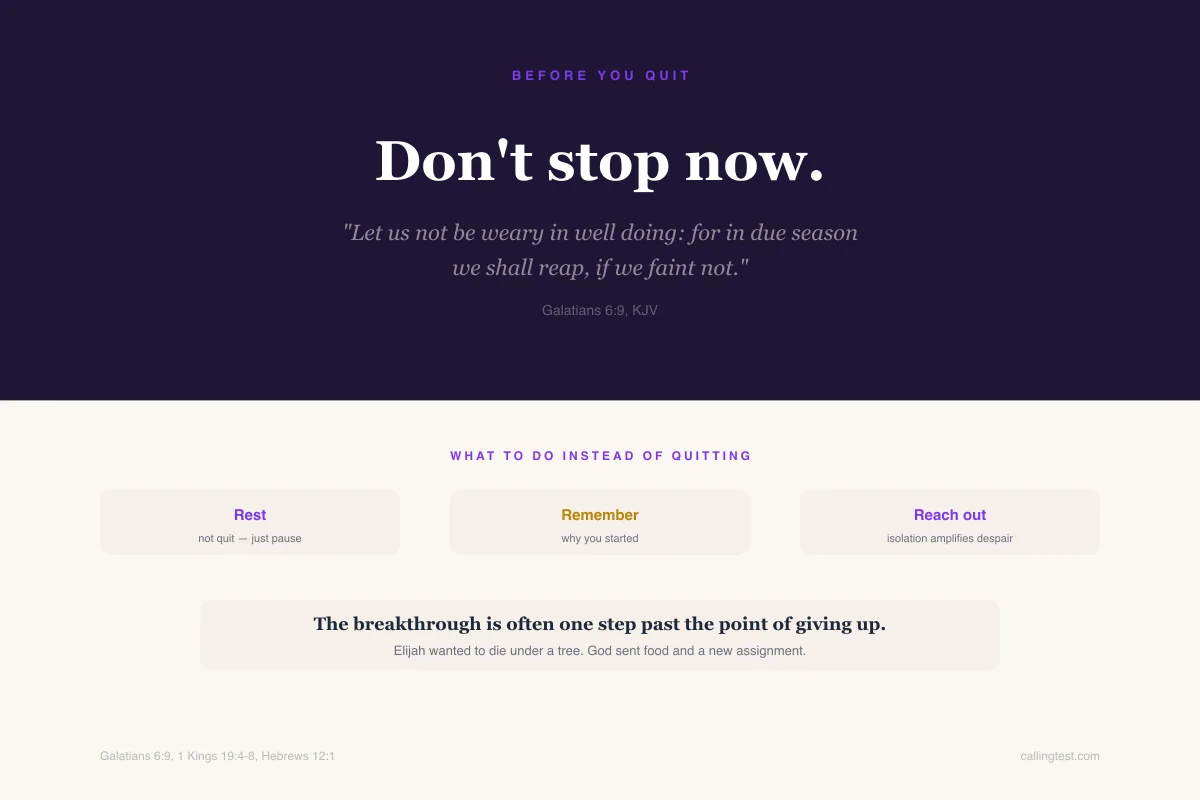 But if God has called you, then quitting is not an option. Resting is. Adjusting is. But abandoning what God assigned? That is different.